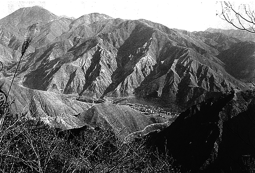 備前楯山頂上より赤倉山を望む。眼下には足尾製錬所がみえる