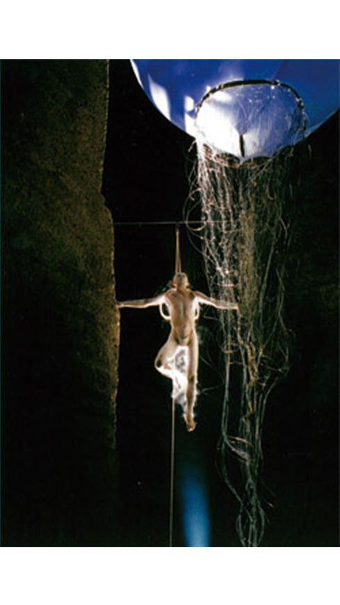 「絶対ここで舞台をやりたいと思った。メンバーの追悼公演の全国ツアーをやってから山海塾を抜けた。大谷でやったのがキーポイント。自分の舞台の方向が決まった。しかし、得た感動も大きかったが、ものすごく大変だった。設営の準備も経費的にもステージを作るのが大変だった。まだ東京に事務所があったので毎日東京から往復して、スタッフは三週間近く地下にもぐりっぱなし。それくらい大掛かりだった。4tトラックで4台くらい砂を入れたり、大谷石を650個買って100メートルくらいの道を作ったり、大きい竹を200本切ってきて舞台美術にしたり。移動しながら踊っていくというスタイルでした。僕の発想で、僕が裸で観客が衣装を着て、舞台の一体感を出すのと防寒を得るための演出を、コシノ・ジュンコさんのデザイン衣装でやりました。観客の衣装を全部作るのも大変だった。自分がやりたいことを一気にやったから疲れた。その分だけやはり得るものはあった。何が一番感動したかというと、それだけの舞台美術を作って全部撤去していった時に、物がどんどんなくなっていくじゃないですか。なくなった瞬間に、二千万年前の凝灰岩の海底火山灰が隆起した、それをさらに掘った空間が現れた……、太古の呼吸を感じ、本当に感動しましたね」