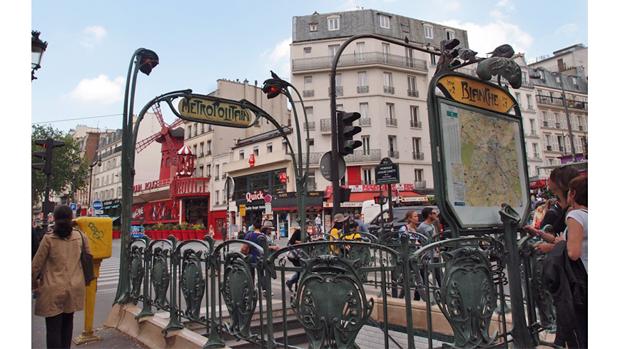 メトロ‘ブランシュ’で降り、右の坂道を行くとルピック通り。奥にムーラン・ルージュが見える
