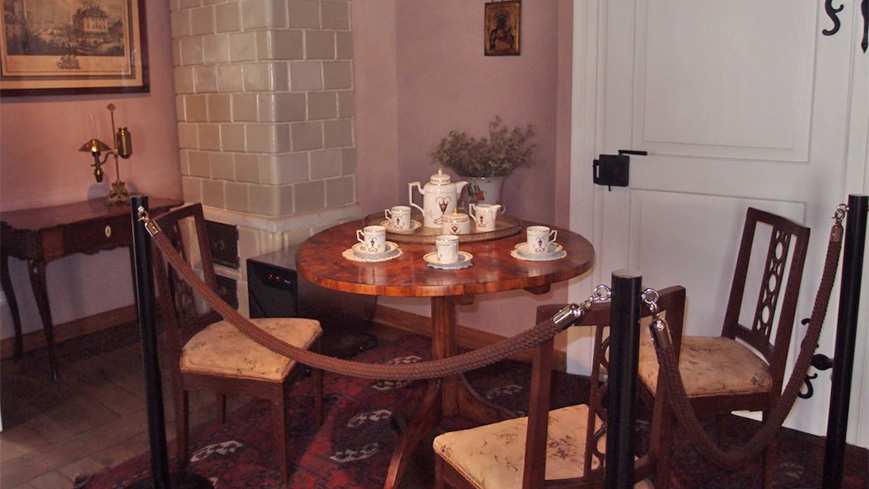 「一家は1810年の秋、ワルシャワに引っ越しますが、その後も家族は夏休みやクリスマスに、この田舎でヴァカンスを過ごしたのです。それで貴族の家主との信頼関係が親密だったのがわかります。例えば、フレデリックは“ポロネーズ ト単調”をスカルベク伯爵に献辞しました。また、お父さんは、フレデリックのお姉さんの結婚の証人や洗礼の代父を伯爵に頼んでいます。この博物館は本家の離れで炊事場や執務室に当てられていたのですが、当時の内装品は何一つ残されていませんでした。修復の際に貴族の屋敷の特徴である柱を備えた玄関ポ―チが付けられたのです」