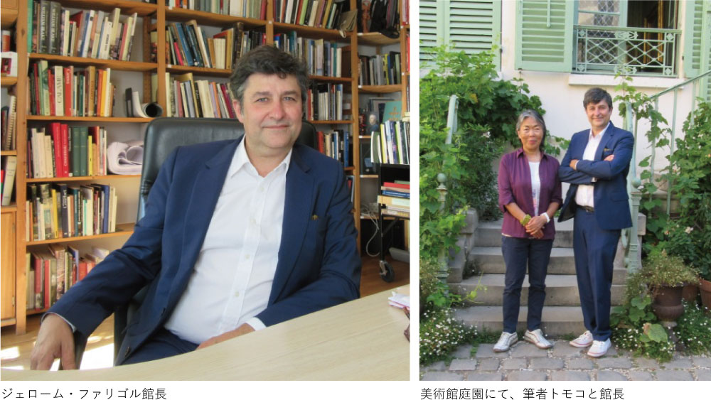 多忙な館長のファリゴル氏に会うことが出来た。「私はここに赴任してきてもうすぐ4年になりますが、その前は南フランスのマルセイユとモンペリエの美術館に赴任していました。私の家族は南フランス在住ですが、私はパリへ単身赴任です。主にここでの仕事は、企画展で「どんな作家を選ぶか」にかかっていると言えます。ロマン主義者たちの集ったサロンが基礎になっていますから、展示方法が文学、音楽、絵画の時代背景を考慮し、他の美術館との協力も必要としています。ここはそっくり1980年にパリ市にシェフェール氏の子孫より寄贈されたのです。彼の3代目の子孫は、ジョルジュ・サンドの孫娘から沢山のサンドの遺品が贈与されていましたので、貴重な陳列物はそのお孫さんの力です。彼女やショパンはこの近くに住んでおり、ここのサロンにいつも来ていたようです」